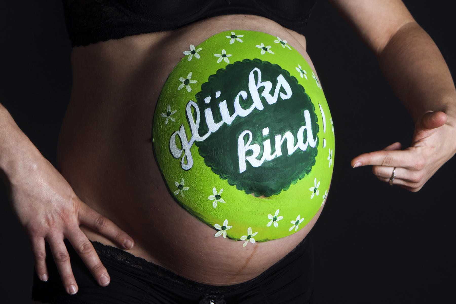 Bitte am Termin nicht den Bauch eincremen, sonst lässt sich die Farbe nicht so gut auftragen. Schön wäre - auch wenn das sonst nicht dein Stil ist - wenn du dich ein bisschen schminkst. Auf den Fotos wirkst du frischer und rosiger.