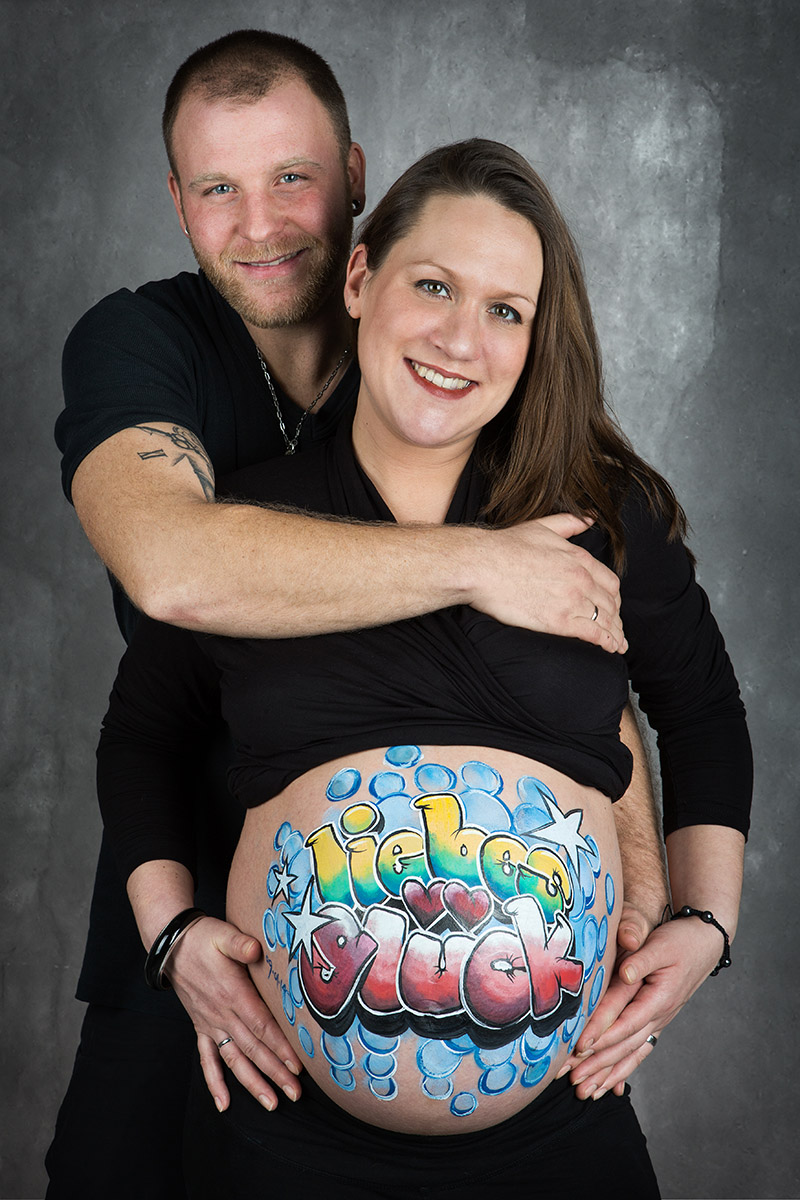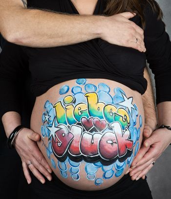 Es werden nur hochwertige Farben aus dem Bodypainting- und Kinderschminkbereich benutzt, also dermatologisch getestet und absolut unbedenklich für die Haut und dein Baby.