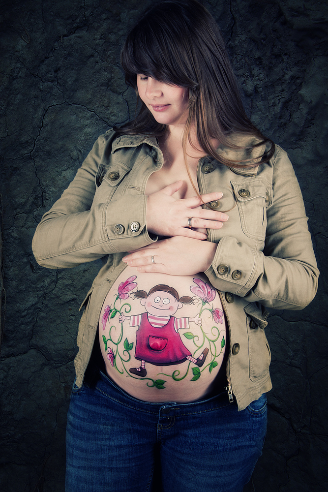 Bitte am Termin nicht den Bauch eincremen, sonst lässt sich die Farbe nicht so gut auftragen. Schön wäre - auch wenn das sonst nicht dein Stil ist - wenn du dich ein bisschen schminkst. Auf den Fotos wirkst du frischer und rosiger.